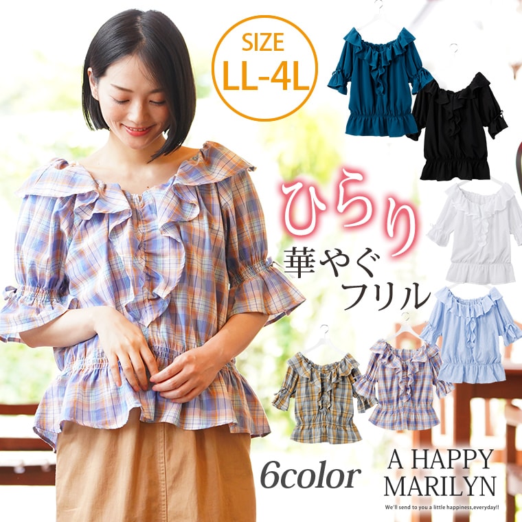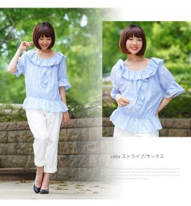 2WAY オフショル フリル 五分袖 ブラウス