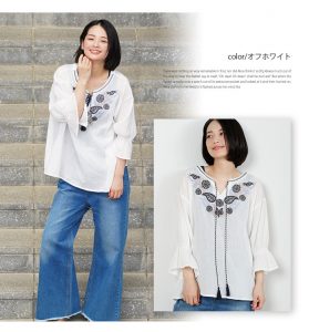 エスニック調刺繍&紐が可愛いブラウスです。