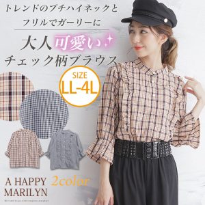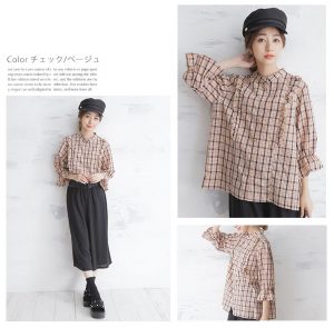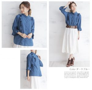 襟元のレースがポイント☆七分袖 プチハイネック ブラウス