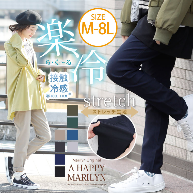 楽冷ひんやり接触冷感COOLクール ウエストゴム楽ちんストレッチ美脚レギパン