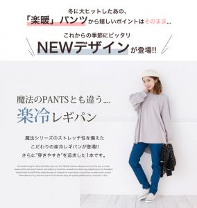 シンプルなデザインでスッキリ着痩せ。 抜群のストレッチ性はそのまま、 暑い季節にオススメの1本にリニューアル!!