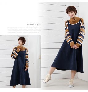 ピーチスキン ロング丈 エプロン ワンピース 肩紐調節OKで自分にちょうど良く♪ Aラインシルエットで体型カバーも◎ ★サイズ:L~6L ¥2,150(税込)