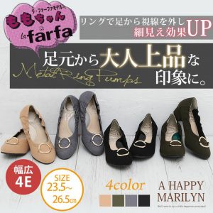 4E程度 幅広 ワイドフィット メタルリング パンプス