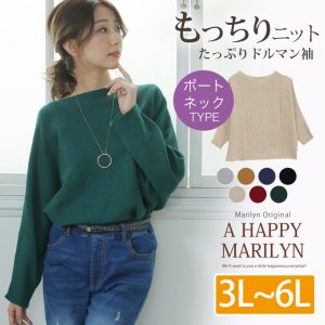 もっちり ボートネック リブ ドルマン 長袖 ニット