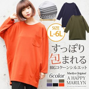 楽ちん ストレッチ ミニ裏毛 長袖 コクーンチュニック