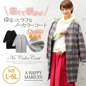 裏起毛 ポケット ジップ 長袖 ノーカラーコート