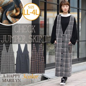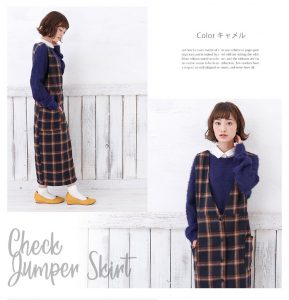 起毛 チェック ロング丈 ジャンパースカート