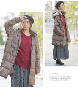 ふっくらとした軽い生地感で薄手で着ても軽くて暖かな1枚