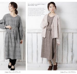 ベルト付 ボリューム袖 長袖 ワンピース