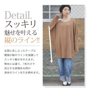 ケーブル ニットソー 長袖 プルオーバー