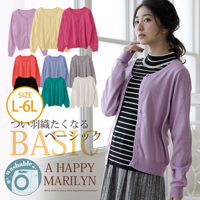 綿混 シンプル クルーネック 長袖 ニット カーディガン